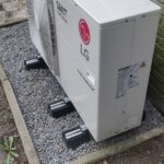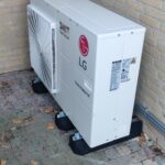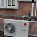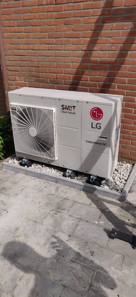Aan de achterzijde van de woning hebben we een LG ThermaV warmtepomp geplaatst om het huis goed op temperatuur te houden.