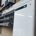 Door het plaatsen van een LG ThermaV monoblock warmtepomp van 9kW, hebben we de warmtevoorziening in het huis voorzien. Wel hebben we de bestaande vloerverwarming-verdeler verwisseld voor een pomploze composiet verdeler, met extra groepen om de garage ook te voorzien van vloerverwarming.