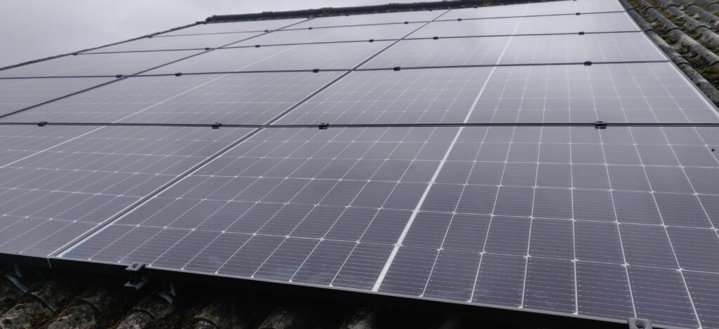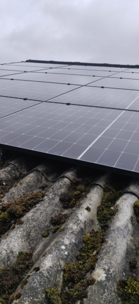Om alle benodigde energie op te wekken, liggen er op de schuur 32 zonnepanelen van 395wp, de ene helft op het zuiden, de andere helft op het noorden. Hierdoor hebben genoeg oppervlakte om ook in de winter een groot deel zelf op te wekken.