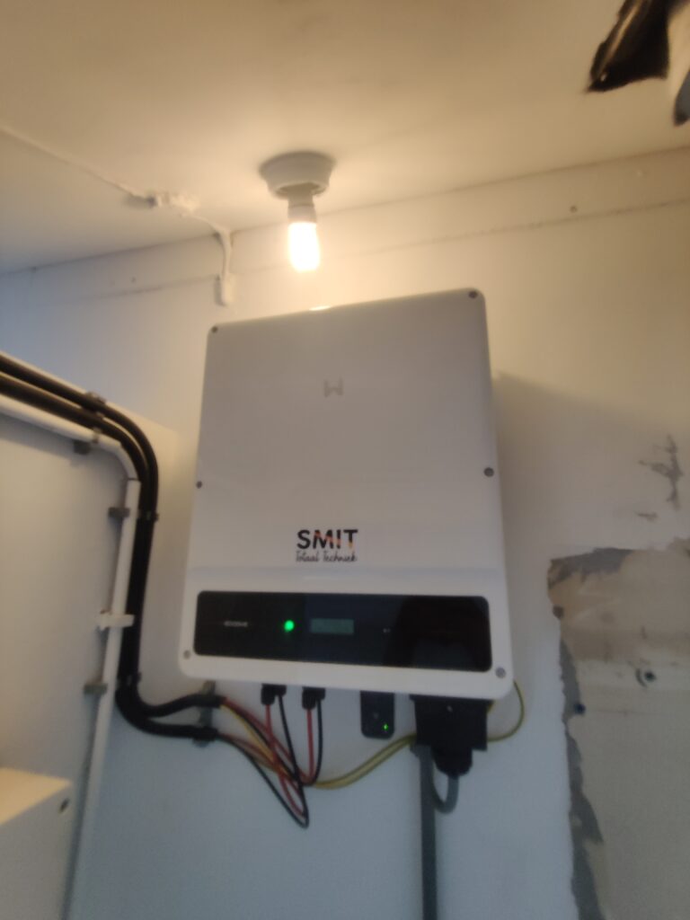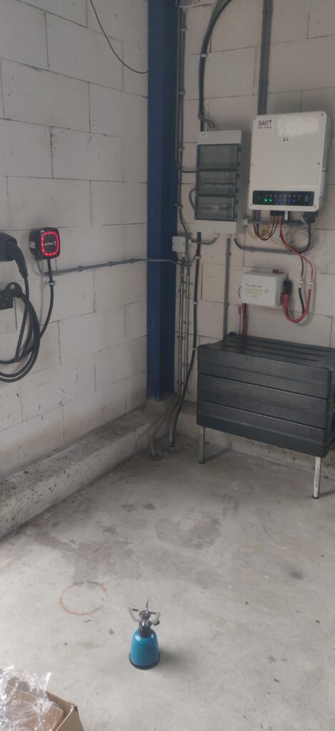 Ook hebben we een 3 fase omvormer geplaatst en 8 extra panelen bijgelegd om de benodigde elektrische energie op te weken wat nodig is om te verwarmen.