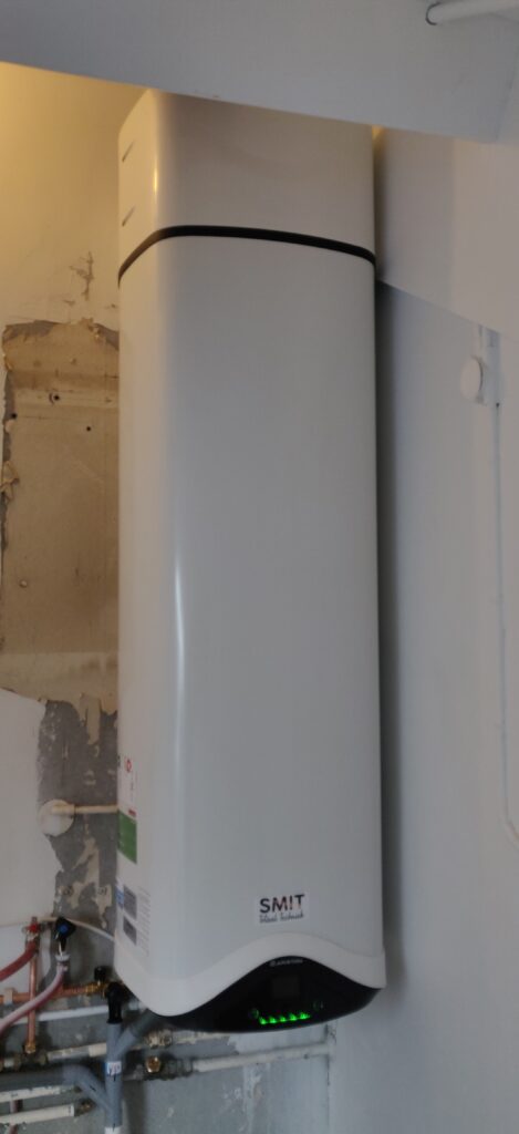 Daarna hebben we een warmtepomp geplaatst om de woning in de winterdagen lekker warm te houden. Een warmtepomp boiler om het tapwater te verzorgen vanuit de ventilatie lucht.