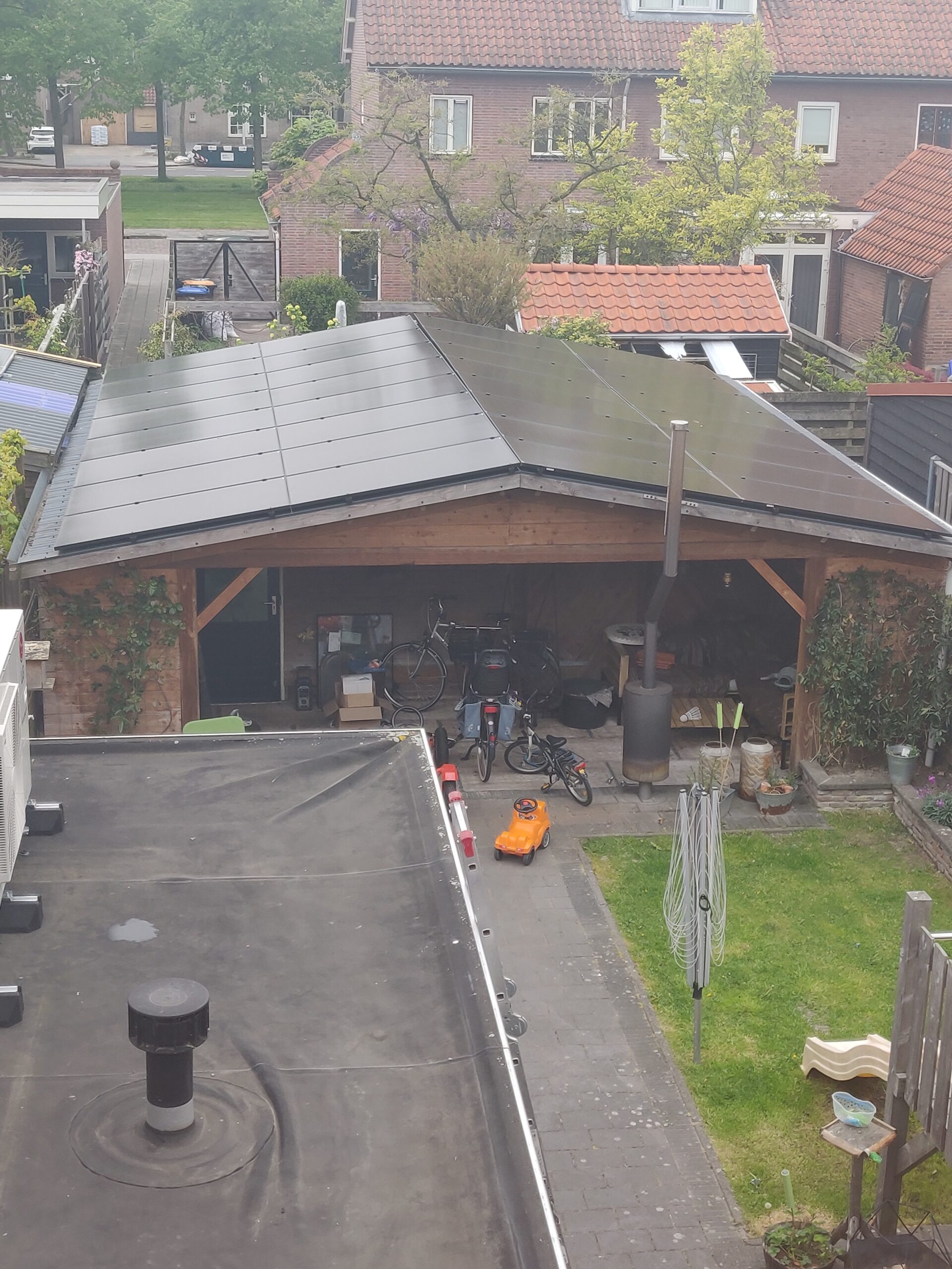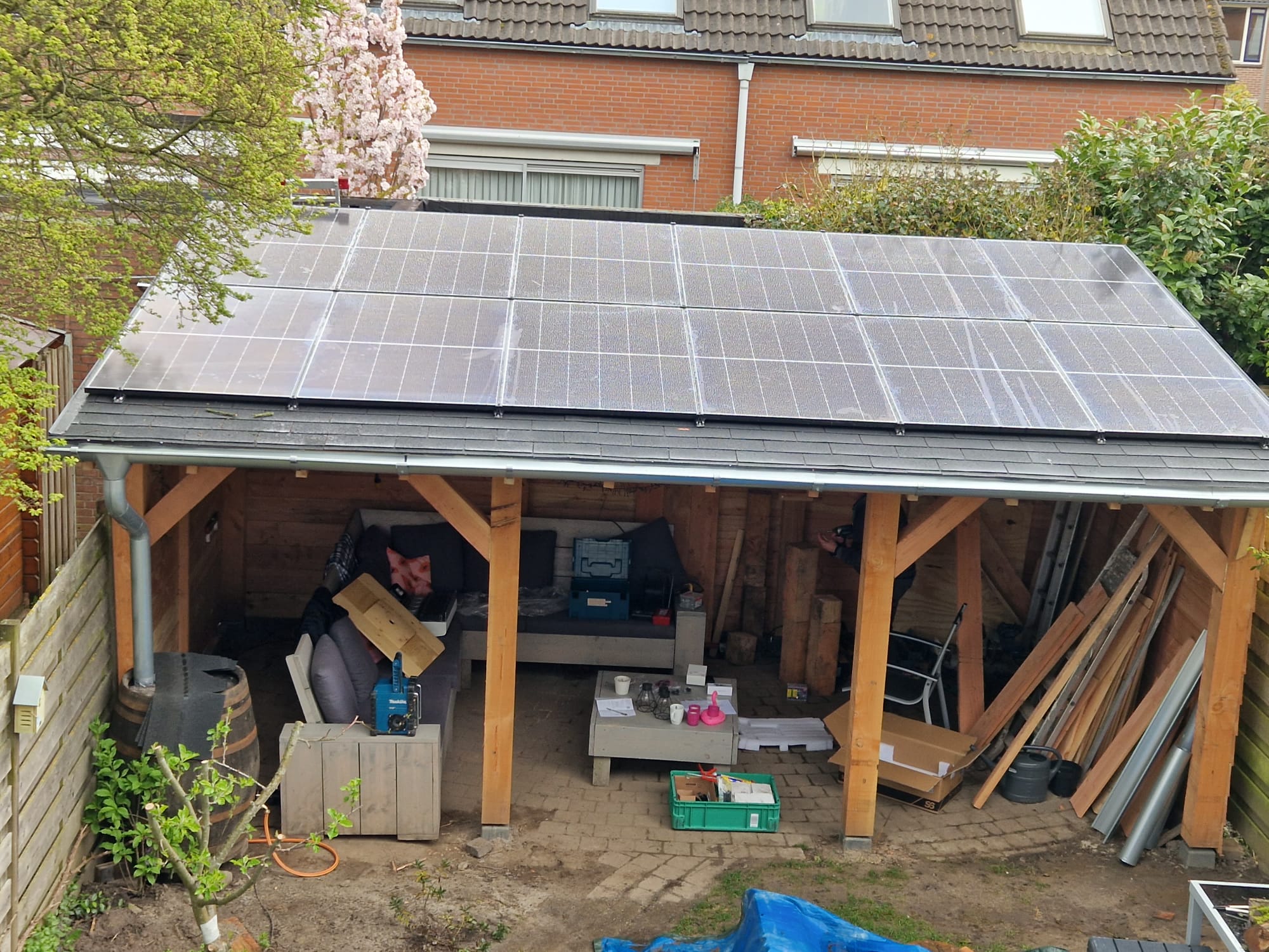 Om voldoende energie op te wekken om aan de behoefte te voldoen, hebben we nadat er een veranda is gebouwd is in de achtertuin, deze ook voorzien van zonnepanelen. Als laatste de groepenkast vervangen, om alle energie veilig te transporteren en klaar te zijn om in de toekomst elektrisch te gaan koken.