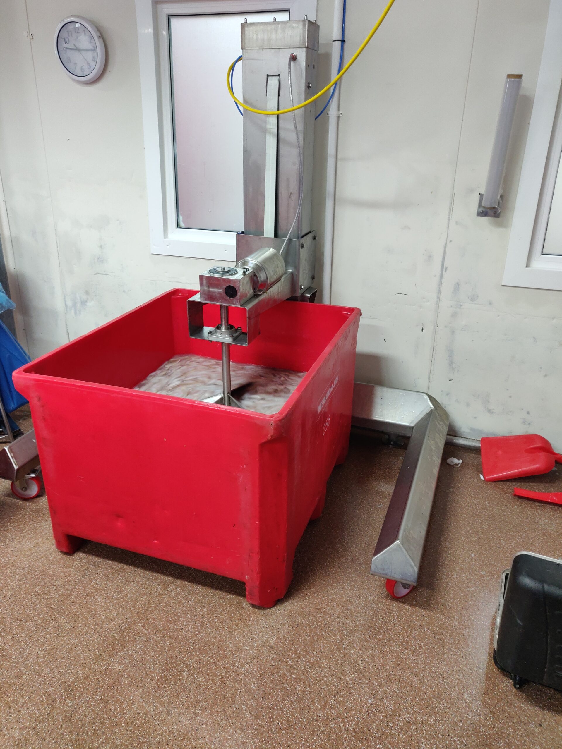 Voor Neerlandia B.V. op Urk hebben we een mix-machine ontworpen en gebouwd. Deze machine kan filet mengen in een tub met water en toevoeging. Door dit proces wordt het beter opgenomen door het product en dit komt de kwaliteit van het product ten goede.