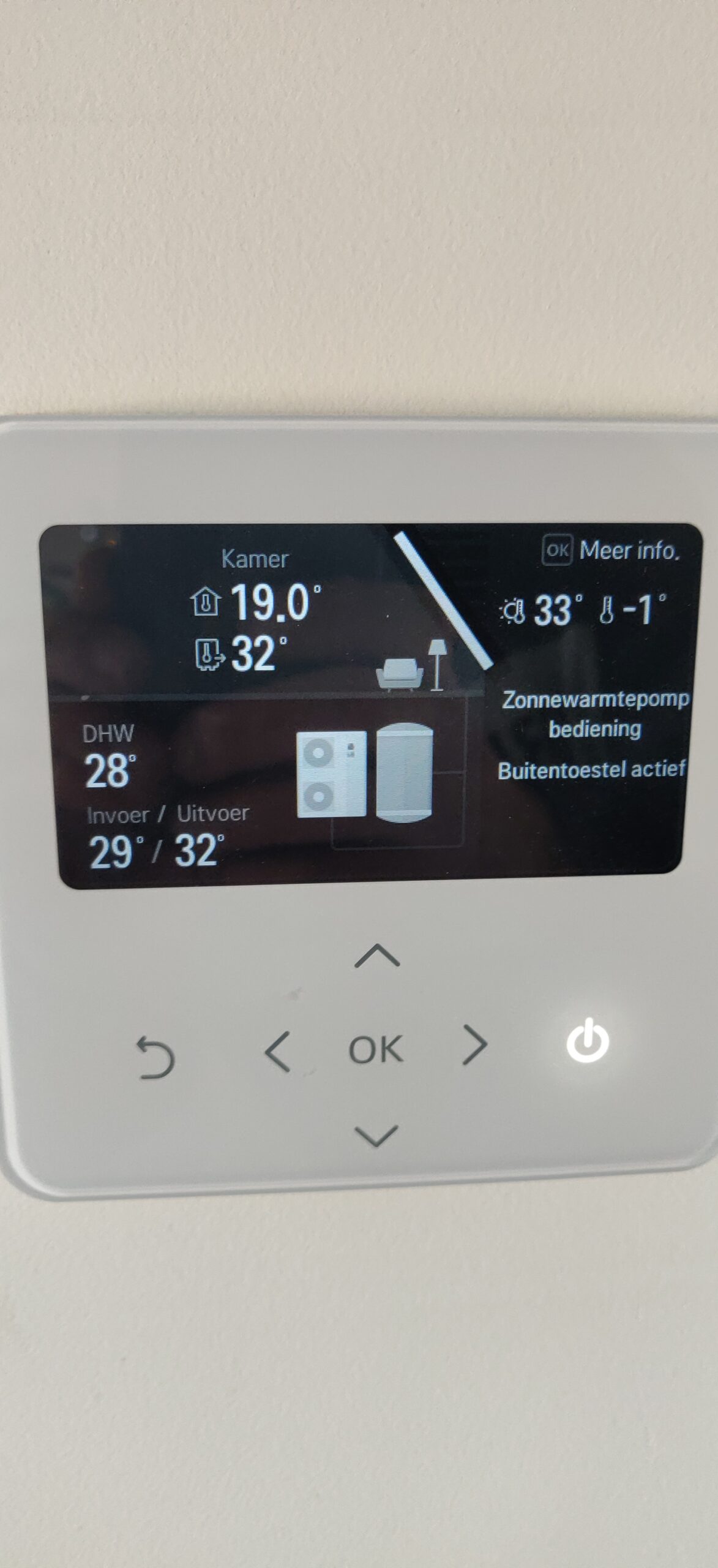 Voor het verwarmen hebben we gebruik gemaakt van een LG TermaV 14kw warmtepomp die samen met een indirecte boiler ook een groot deel van het tapwater voor zijn rekening neemt.