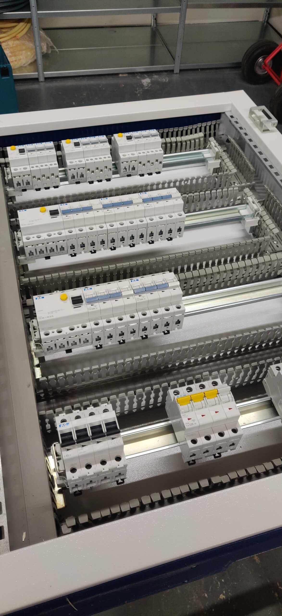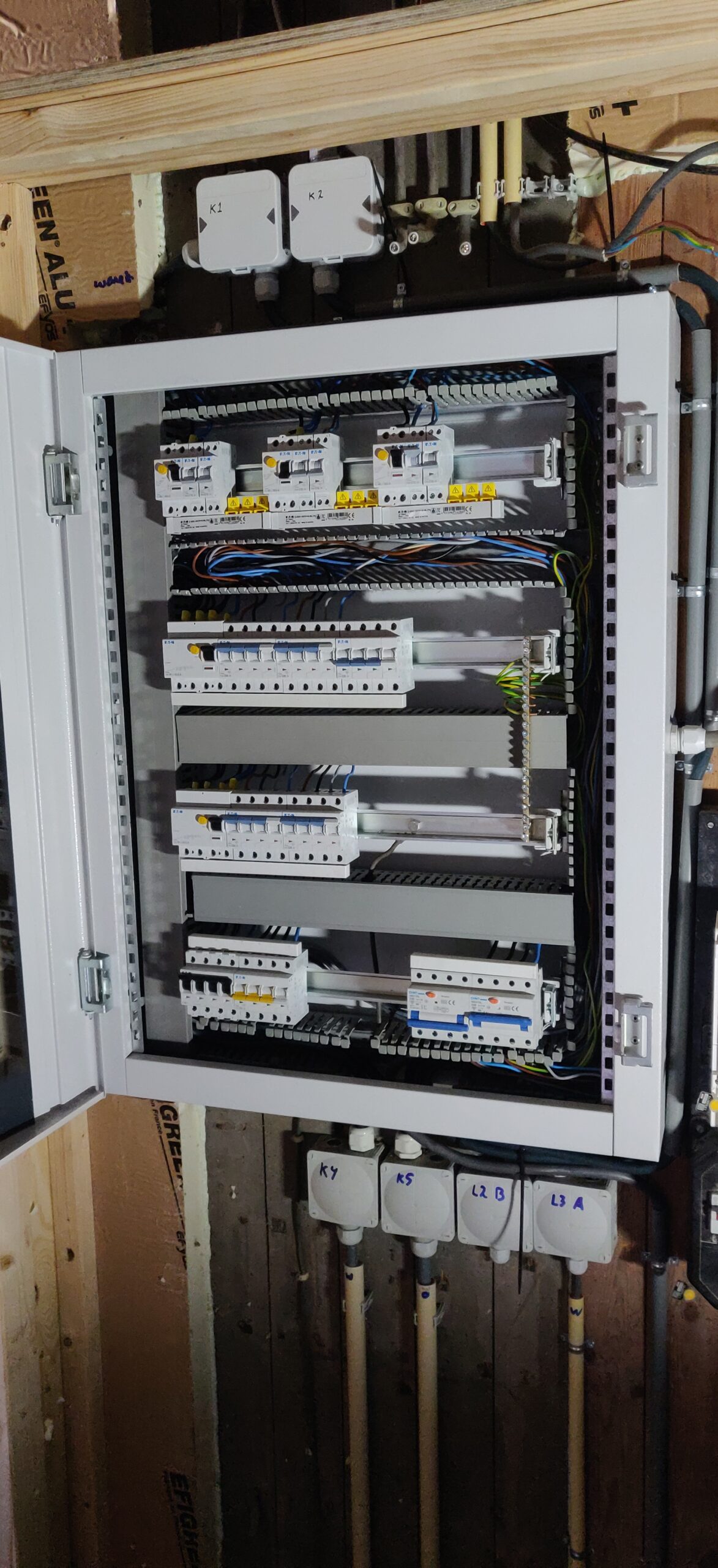 Het vervangen van een groepenkast in de schuur was nodig om een veilige basis te maken voor de energie opslag, opwekking en de autolaatpaal.