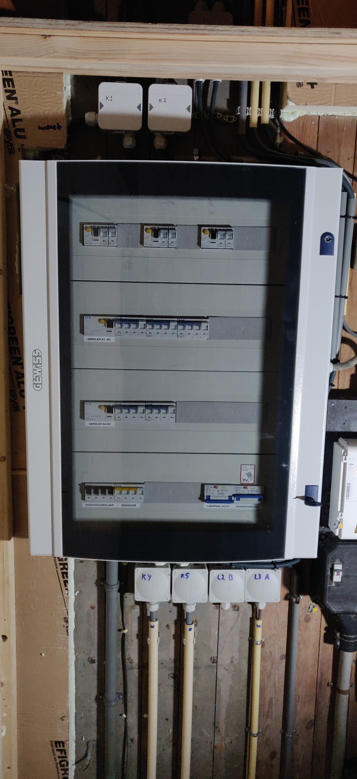 De eerste stap om meer elektrisch te gaan, hebben we de groepenkast vervangen van oude stoppen naar aardlekautomaten. De eerste, belangrijke stap, naar veilig, gasloos wonen.