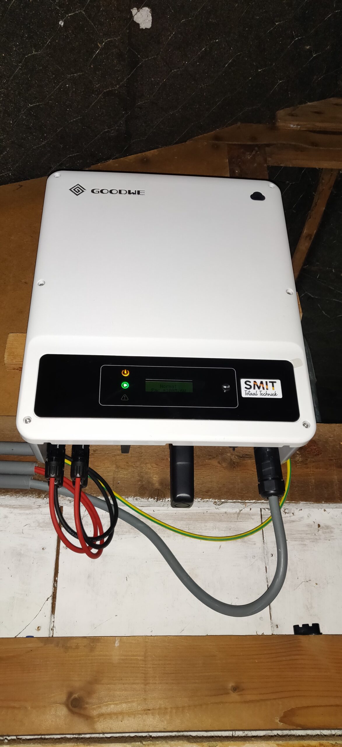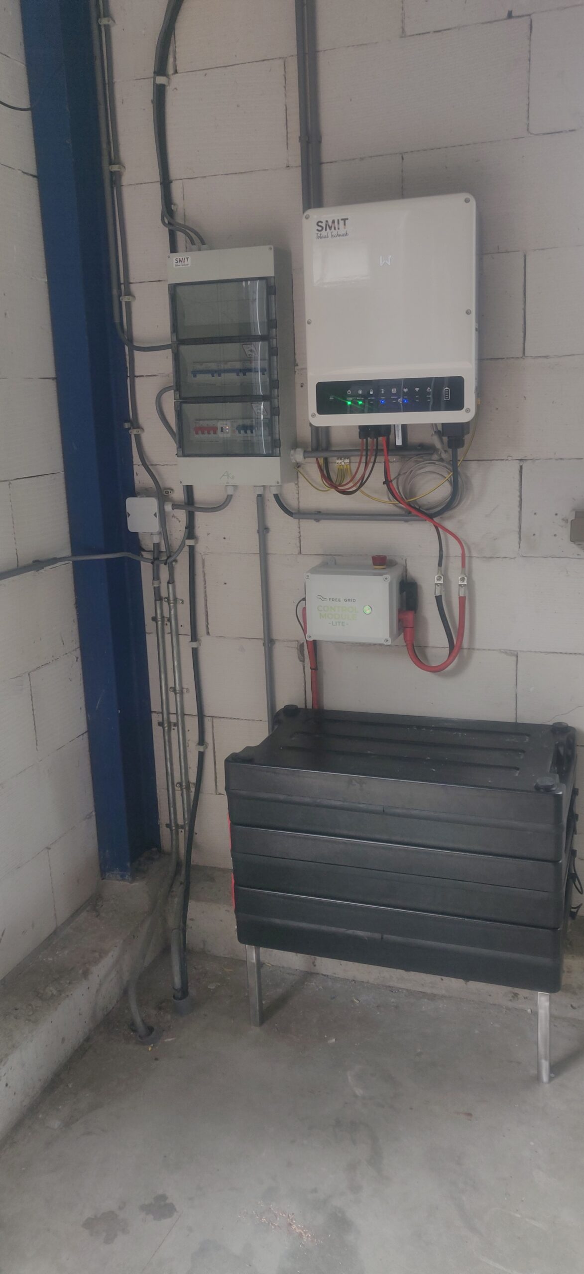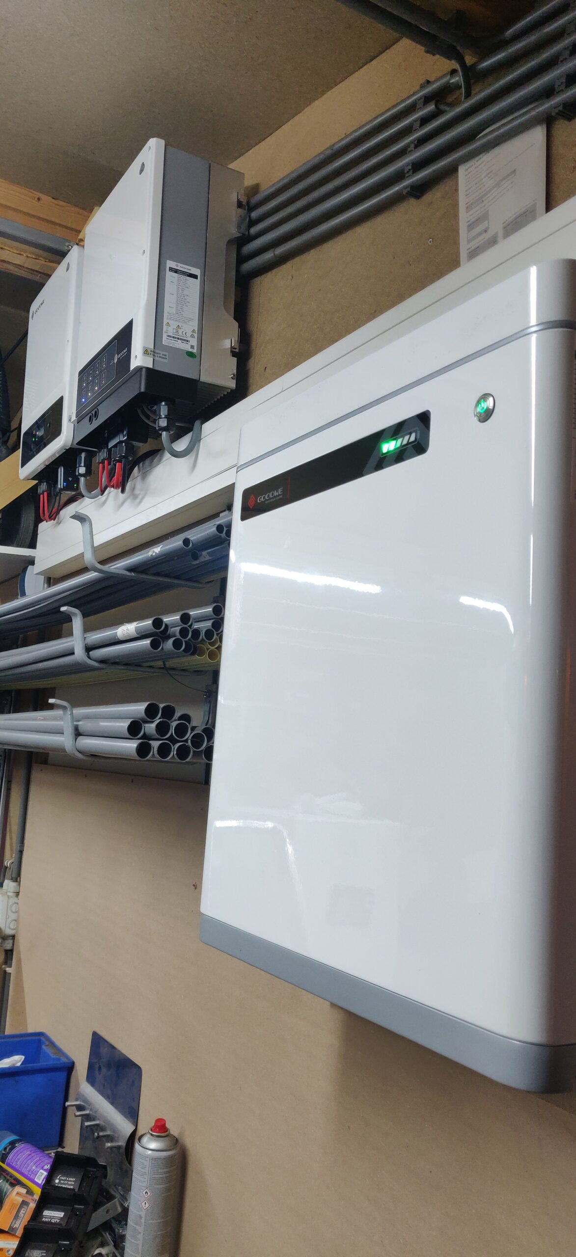 Om alles compleet te maken, zo goed mogelijk onze eigen energie te gebruiken en het net te beschermen tegen hoge afname en terugleveringen, hebben we ook een accu geplaatst met hybride omvormer. Deze zorgt er voor dat pieken qua verbruik en teruglevering afgezwakt worden.