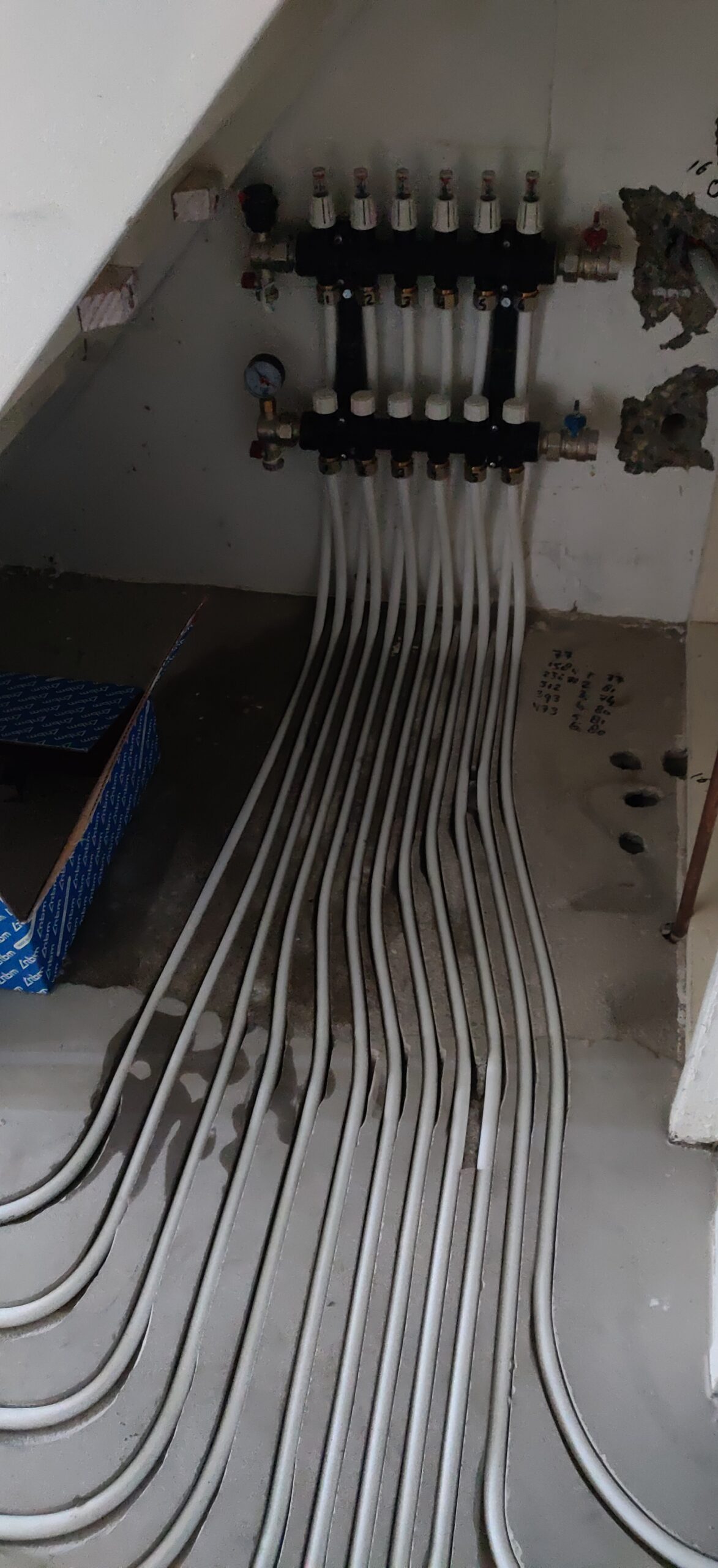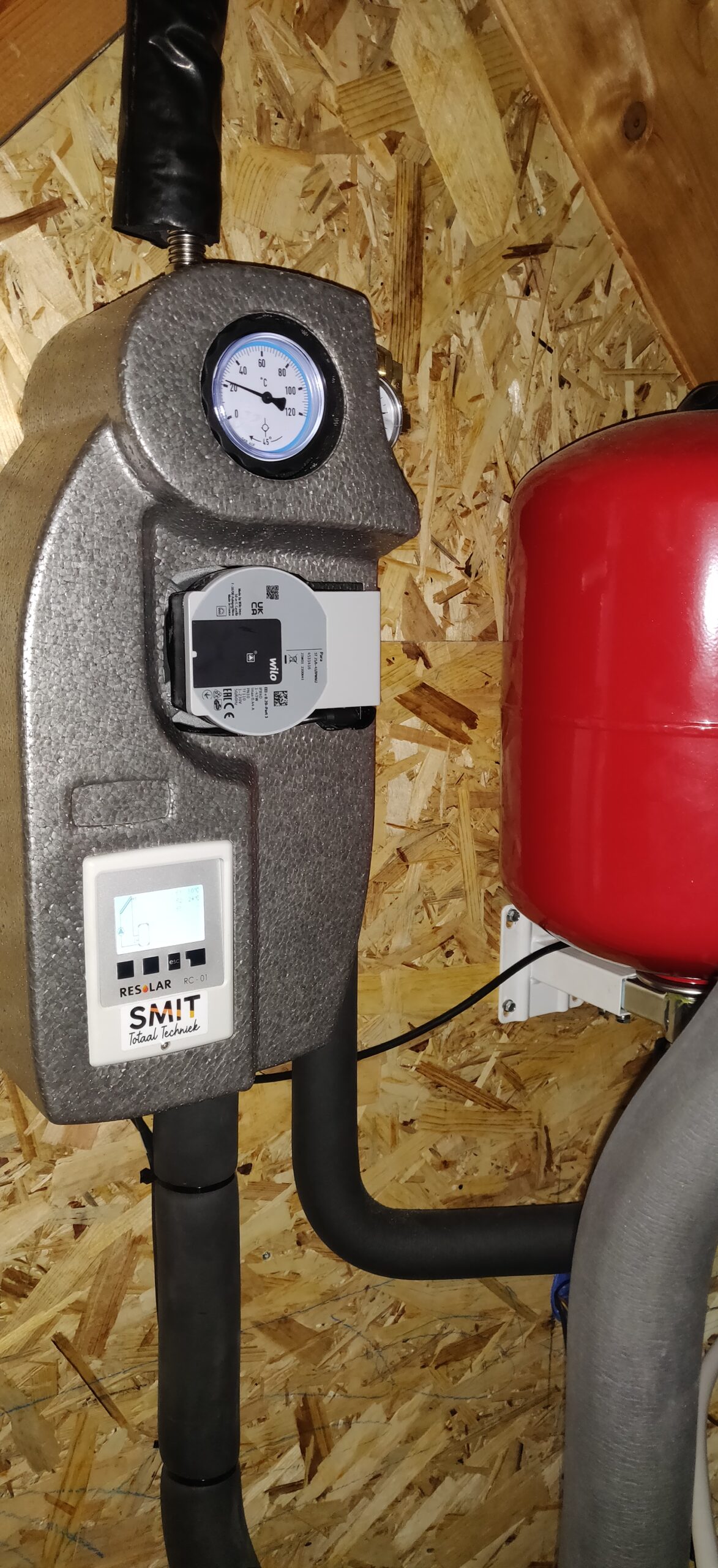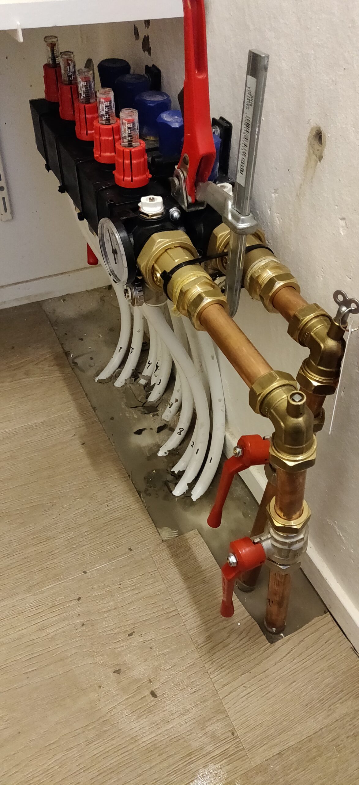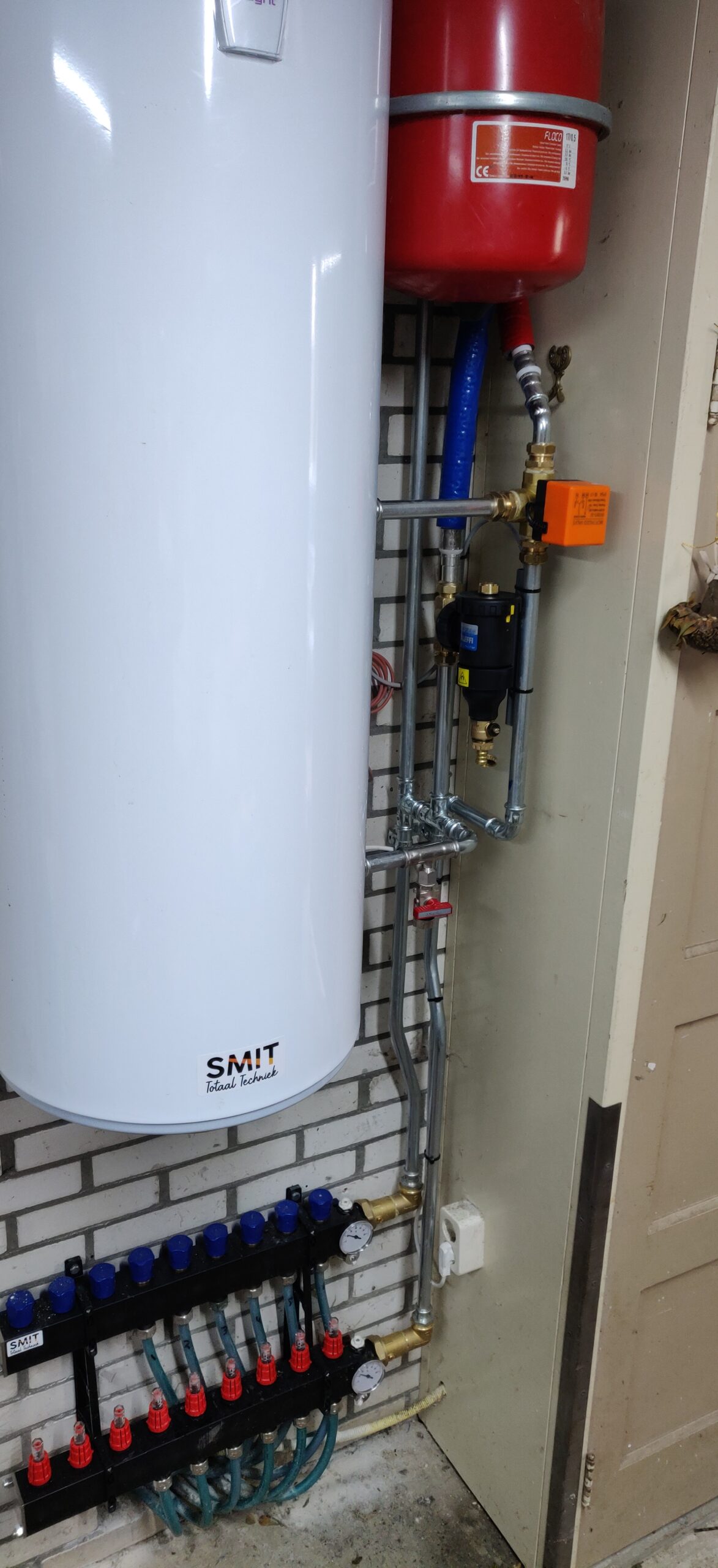 Wij hebben het plaatsten van de warmtepomp voor onze rekening genomen met het vervangen van de vloerverwarmings verdeler naar een composiet model zonder eigen pomp.